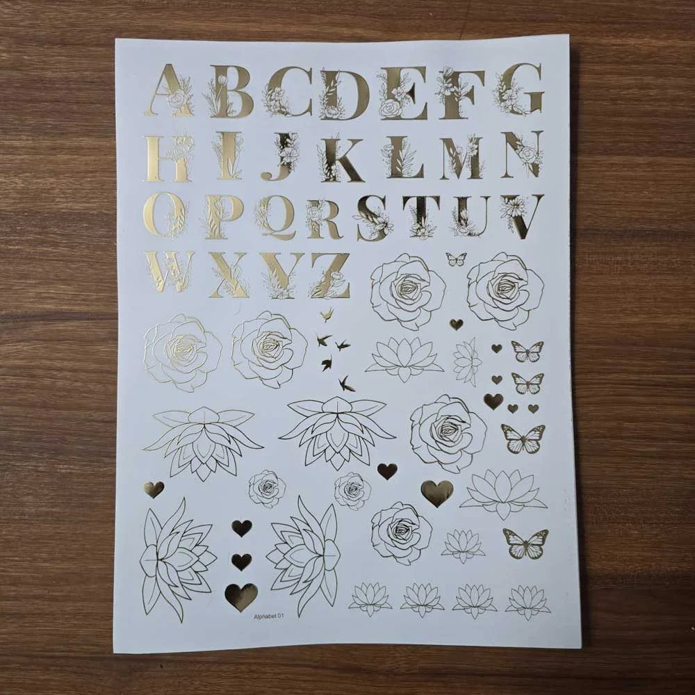 A4 Golden Embossed Alphabet & Floral Decorative Sheet
