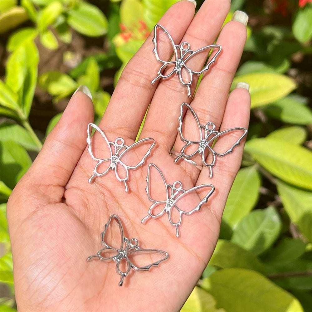 Butterfly Design Silver Bezel Pendant (Set of 6)