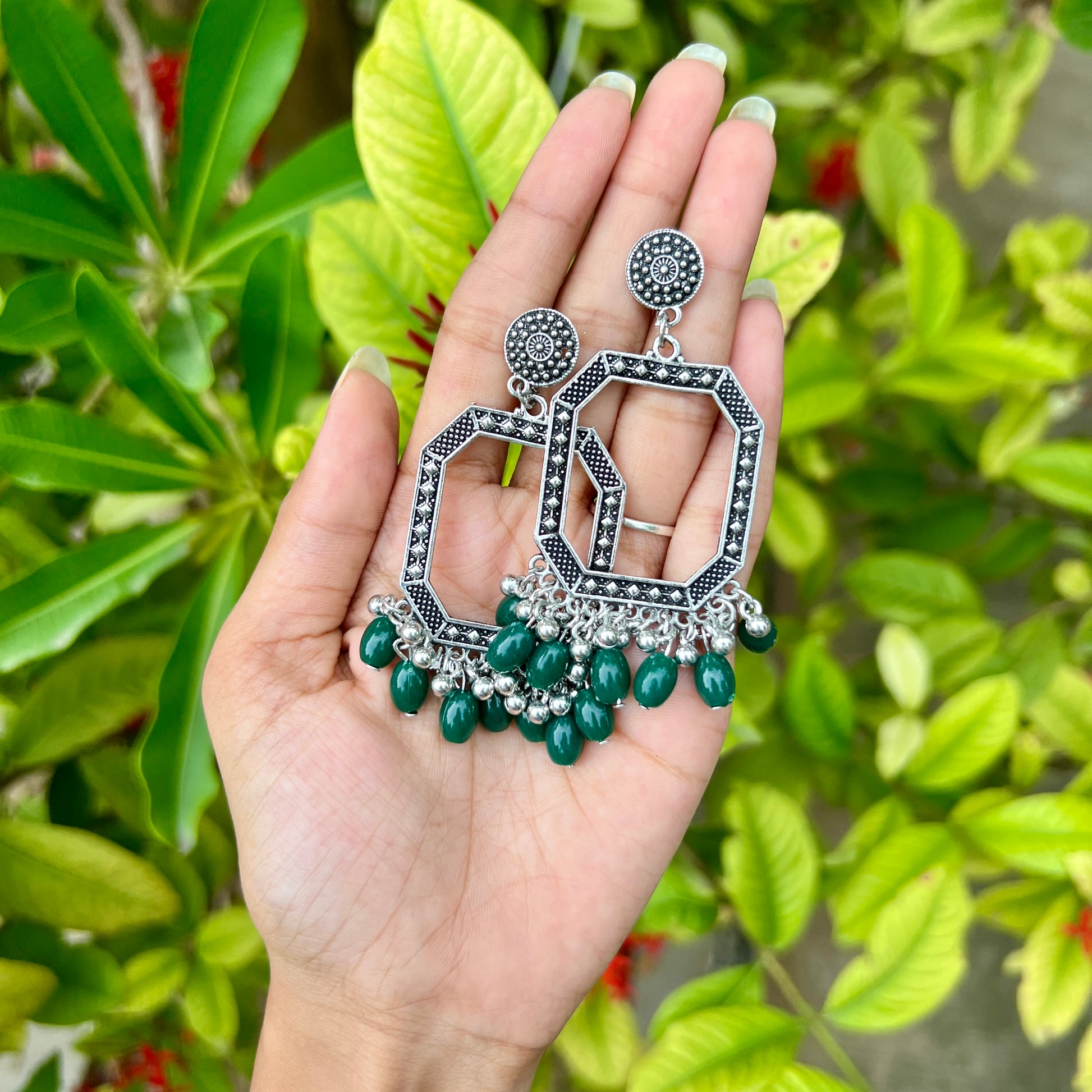 Emerald Droplet Hoop Jhumka