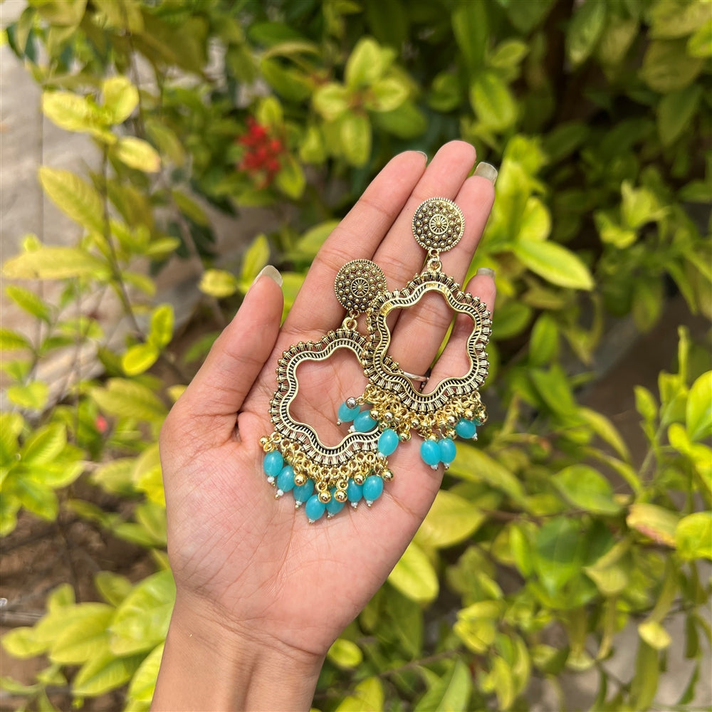 Floral Dome Jhumka Earrings – Sky Blue Beads