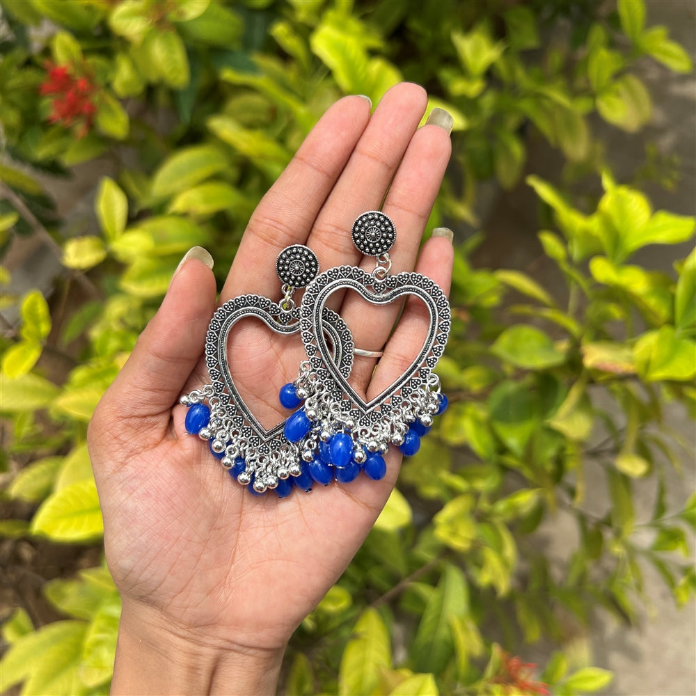 Heart Frame Jhumka Earrings – Royal Blue Beads