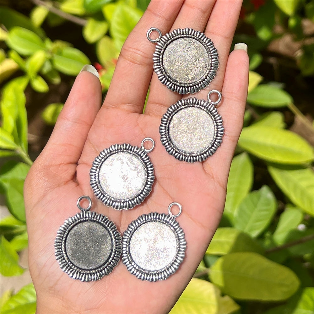 Royal Embossed Round Pendant Base - Silver (Set of 5)