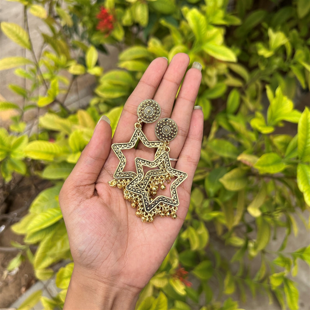 Star Frame Jhumka Earrings – Antique Gold
